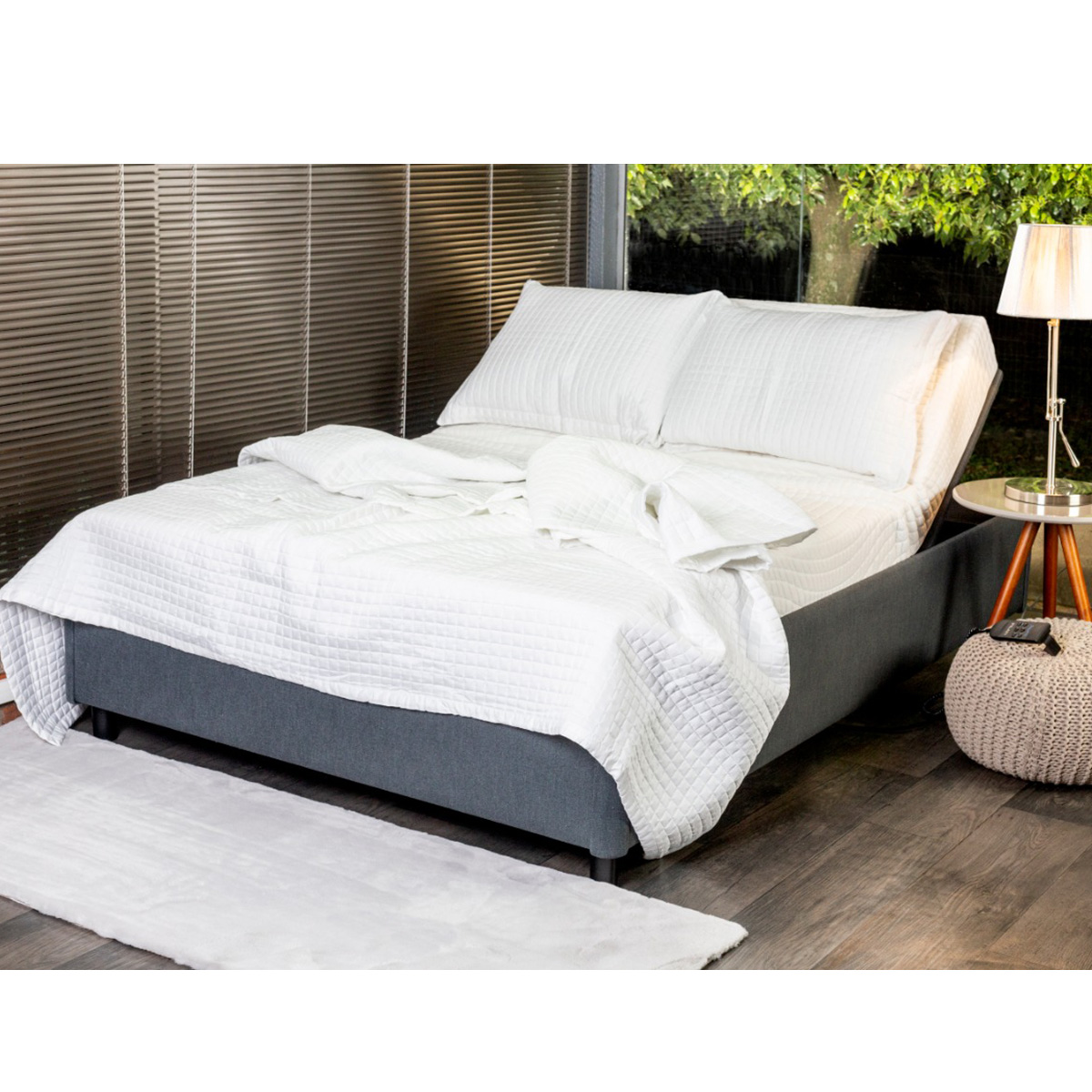 Cama Articulada Zeus conta com motor importado da Alemanha, extremamente silencioso. Estrutura em Mdf revestido e estrado anatômico com tecnologia italiana. A Cama Articulada tem como opcional estrutura interna para ser utilizada como baú.