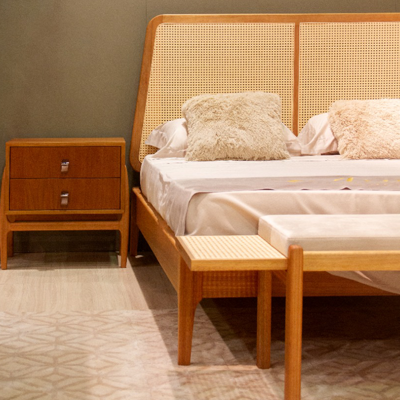 A cama Brisa do Studio Armil tem um design contemporâneo, é confeccionada em madeira maciça e conta com acabamento em tela na cabeceira. Seu acabamento minucioso e a atenção dada aos detalhes fazem toda diferença. A cama Brisa também pode vir com cabeceira em tecido.