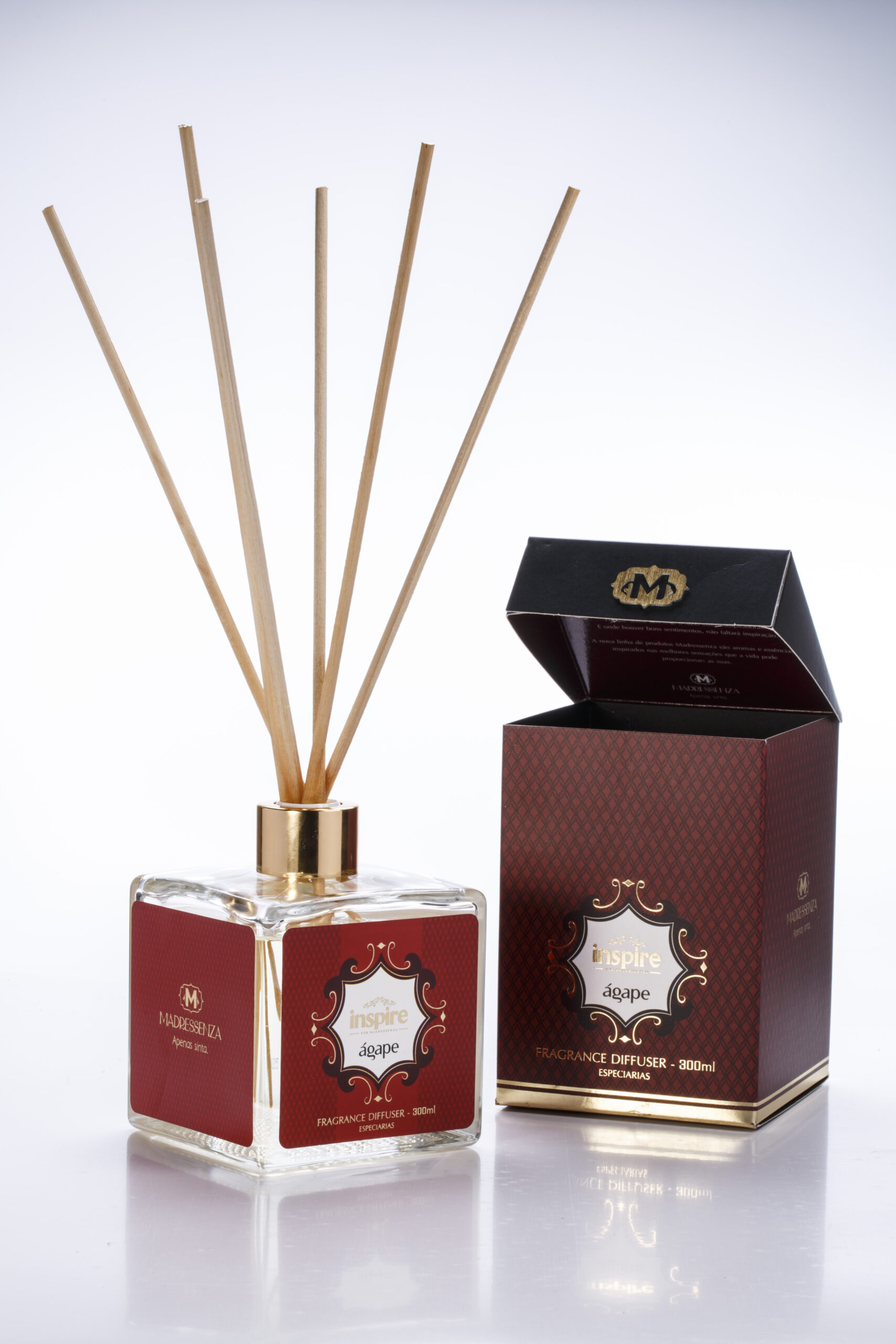 O Difusor de Ambiente Ágape é intenso, envolvente, essencial. As sensações causadas pela linha ágape são inspiradas no mais pleno e sublime dos amores. Com um aroma marcante, transmite uma sensação de energia revigorante e prazerosa. Devido a suas notas marcantes das especiarias transmite sensações afrodisíacas.