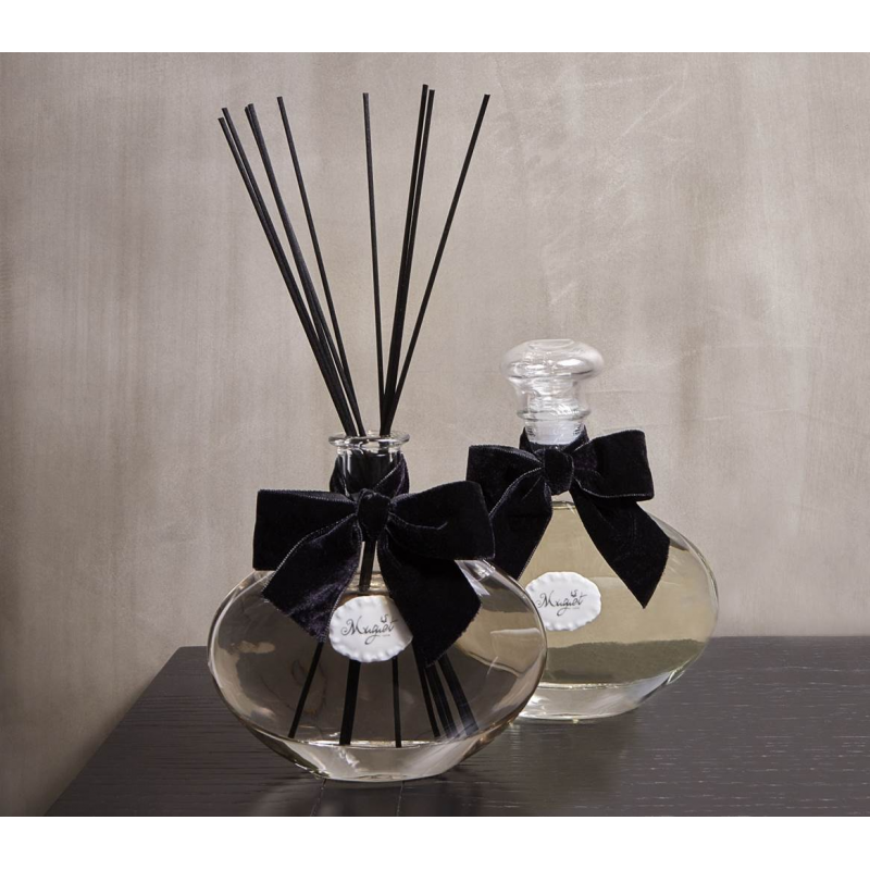 O Difusor de ambiente Primitivo vem em elegante garrafa que tem efeito decorativo. Além disso, o detalhe da fita em veludo preto e varetas da mesma cor dão um toque de sofisticação.