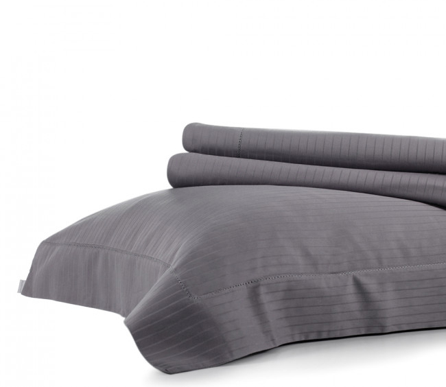 Jogo de Lençol Buddemeyer 300 Fios Stripes, com fronhas em tecido cetim 300 fios, 100% algodão, fio penteado. Colcha Buddemeyer 300 Fios Stripes, 100% algodão, fio penteado. Tecido adamascado com desenhos de listras foscas e brilhantes na colcha e no porta travesseiro. Fronha 50X70 Buddemeyer 300 Fios Stripes, 100% algodão, fio penteado com ponto ajour formando uma moldura e 3 abas